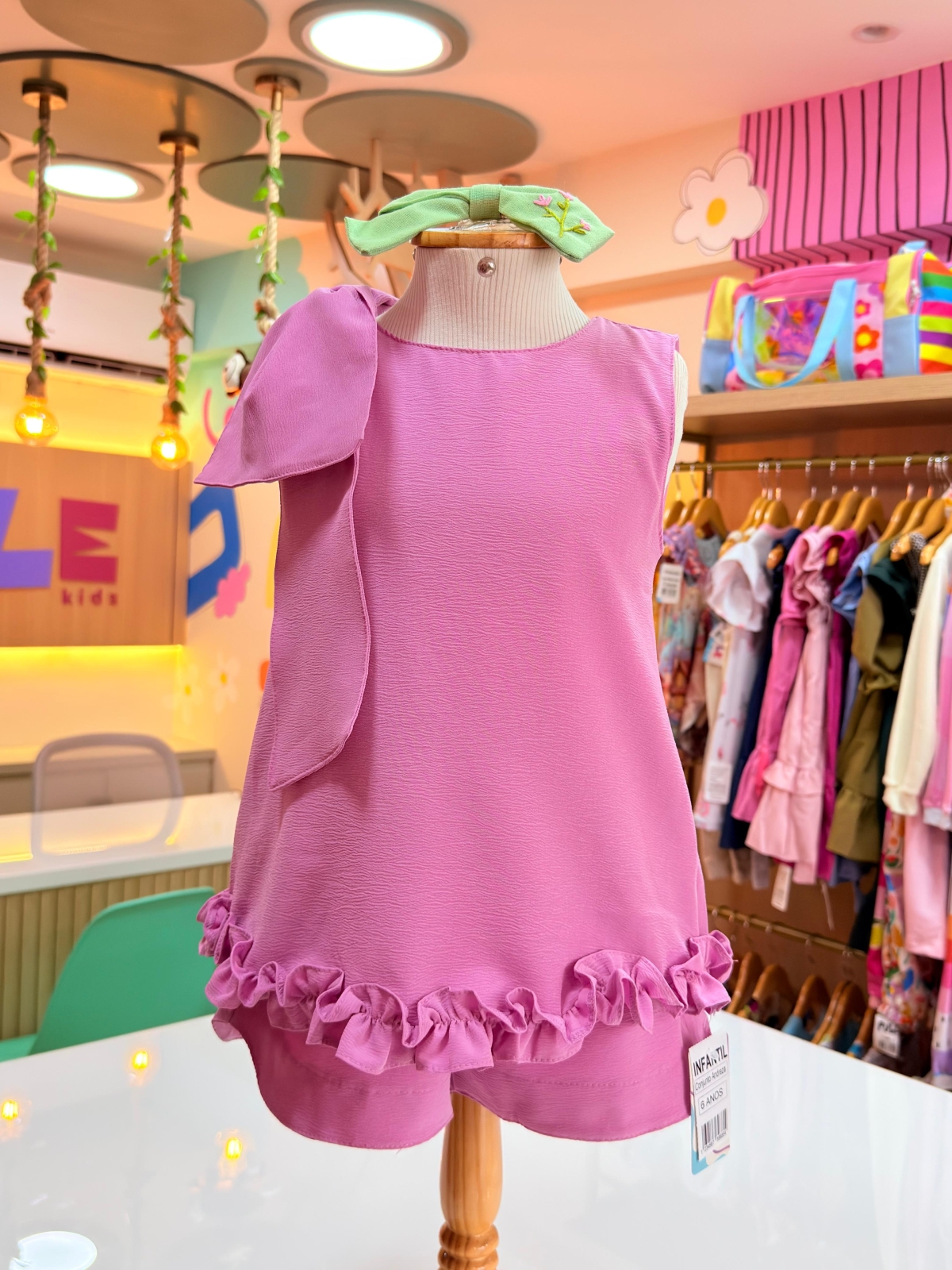 | Conjunto em Tecido Crepe Larissa. A modelo da imagem tem 5 anos de esta vestindo o tamanho 4 2 anos - Blusa 60cm busto / 37cm comprimento Short 58cm largura (esticado) / 23cm comprimento 4 anos - Blusa 64cm busto / 40cm comprimento Short 60cm largura (esticado) / 26cm comprimento 6 anos - Blusa 70cm busto / 43cm comprimento Short 66cm largura (esticado) / 28cm comprimento 8 anos - Blusa 74cm busto / 49cm comprimento Short 74cm largura (esticado) / 30cm comprimento 10 anos - Blusa 76cm busto / 52cm comprimento Short 82cm largura (esticado) / 31cm comprimento (NÃO FAZEMOS TROCA E NÃO EMBALAMOS PARA PRESENTE AS PEÇAS QUE ESTÃO NA PROMOÇÃO) |