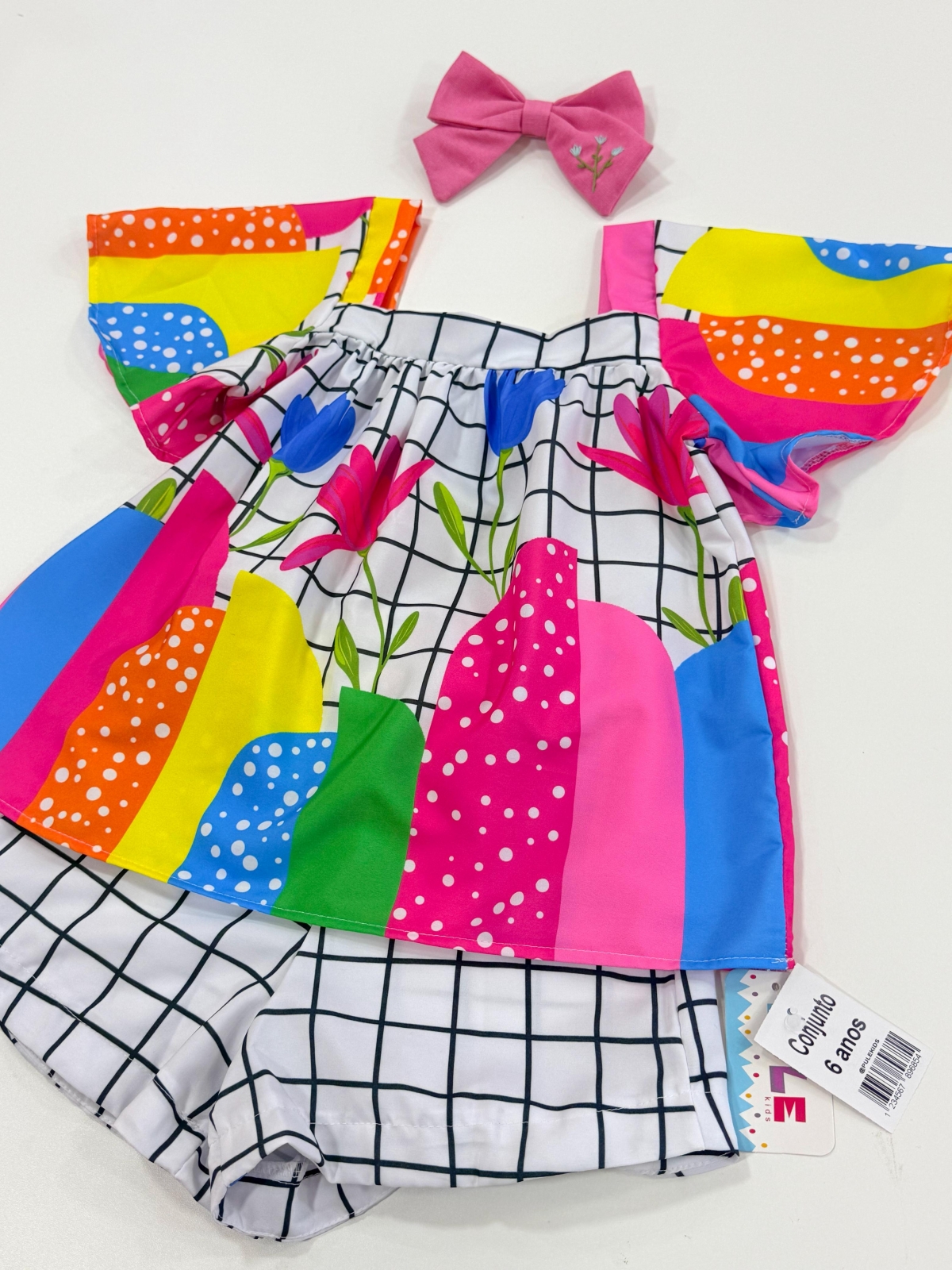 Tecido Soft Crepe Medidas: 4 anos - Blusa 31cm busto frente/ 43cm comprimento Short 28cm largura (esticado) / 24cm comprimento 6 anos - Blusa 33cm busto frente/ 45cm comprimento Short 32cm largura (esticado) / 26cm comprimento 8 anos - Blusa 35cm busto frente/ 50cm comprimento Short 34cm largura (esticado) / 28cm comprimento 10 anos - Blusa 40cm busto frente/ 52cm comprimento Short 36cm largura (esticado) / 30cm comprimento 12 anos - Blusa 42cm busto frente/ 56cm comprimento Short 40cm largura (esticado) / 33cm comprimento (NÃO FAZEMOS TROCA E NÃO EMBALAMOS PARA PRESENTE AS PEÇAS QUE ESTÃO NA PROMOÇÃO) |