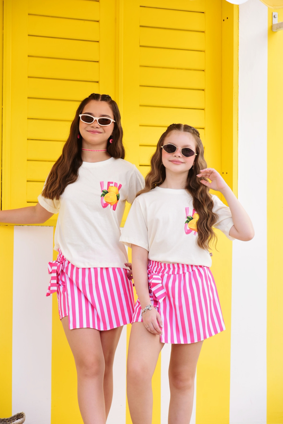 Conjunto Short Saia Lemon Rosa 5 estrelas