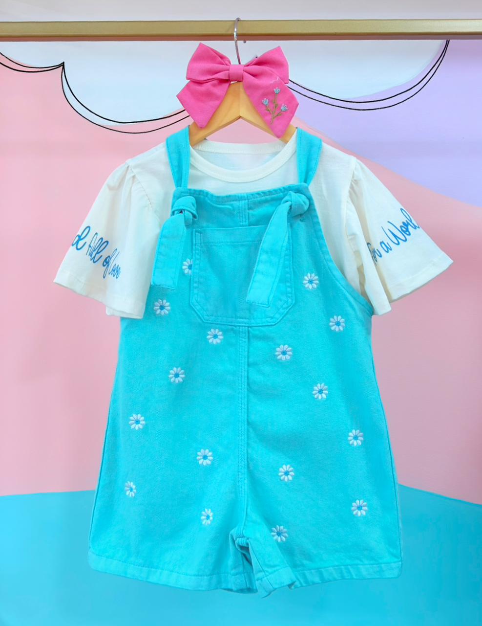 Camisa 100% algodão Jardineira Jeans ? Medidas: 4 anos - Jardineira 32cm busto / 62cm comprimento Blusa 31cm busto/ 34cm comprimento