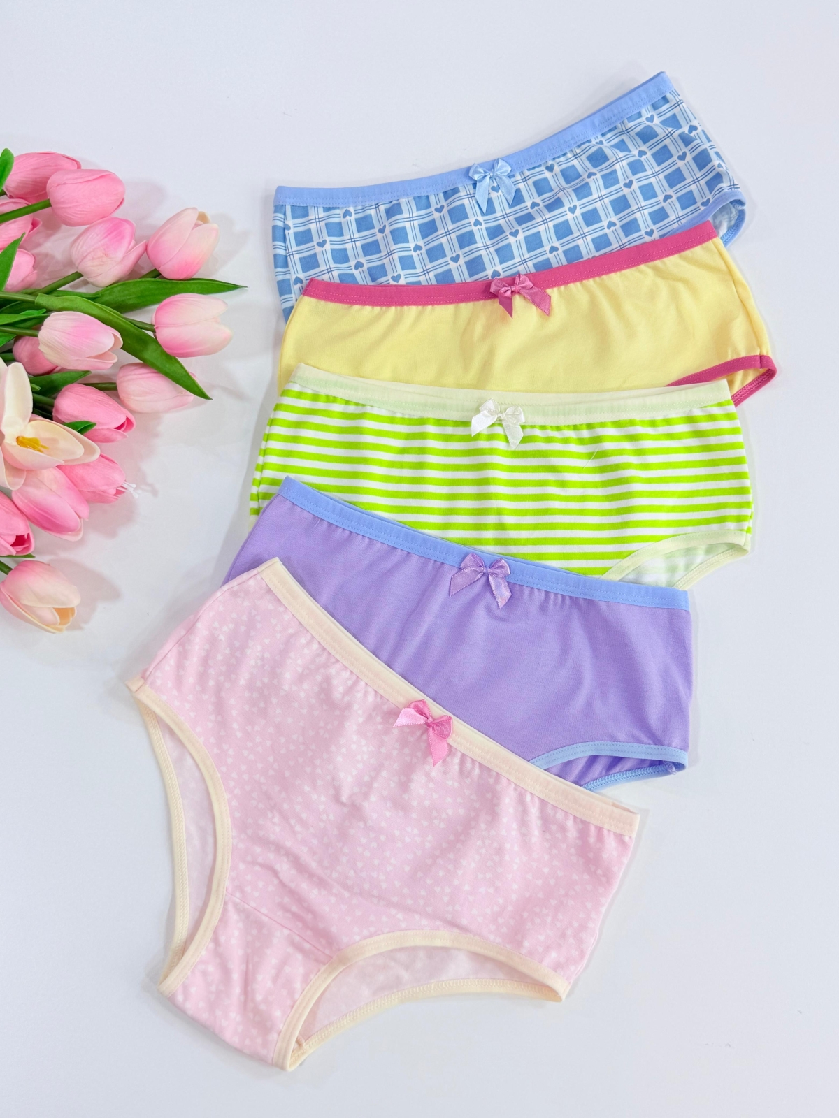 O kit contém 5 calcinhas ( uma de cada cor estampa, vão cores candy color sortidas) CALCINHA INFANTIL EM COTTON PENTEADO (96% ALGODÃO / VIÉS ELÁSTICO SUPER CONFORTÁVEL NA CINTURA E NAS PERFEITA PARA PRINCESAS QUE NÃO DISPENSAM CONFORTO NA HORA DA DIVERSÃO