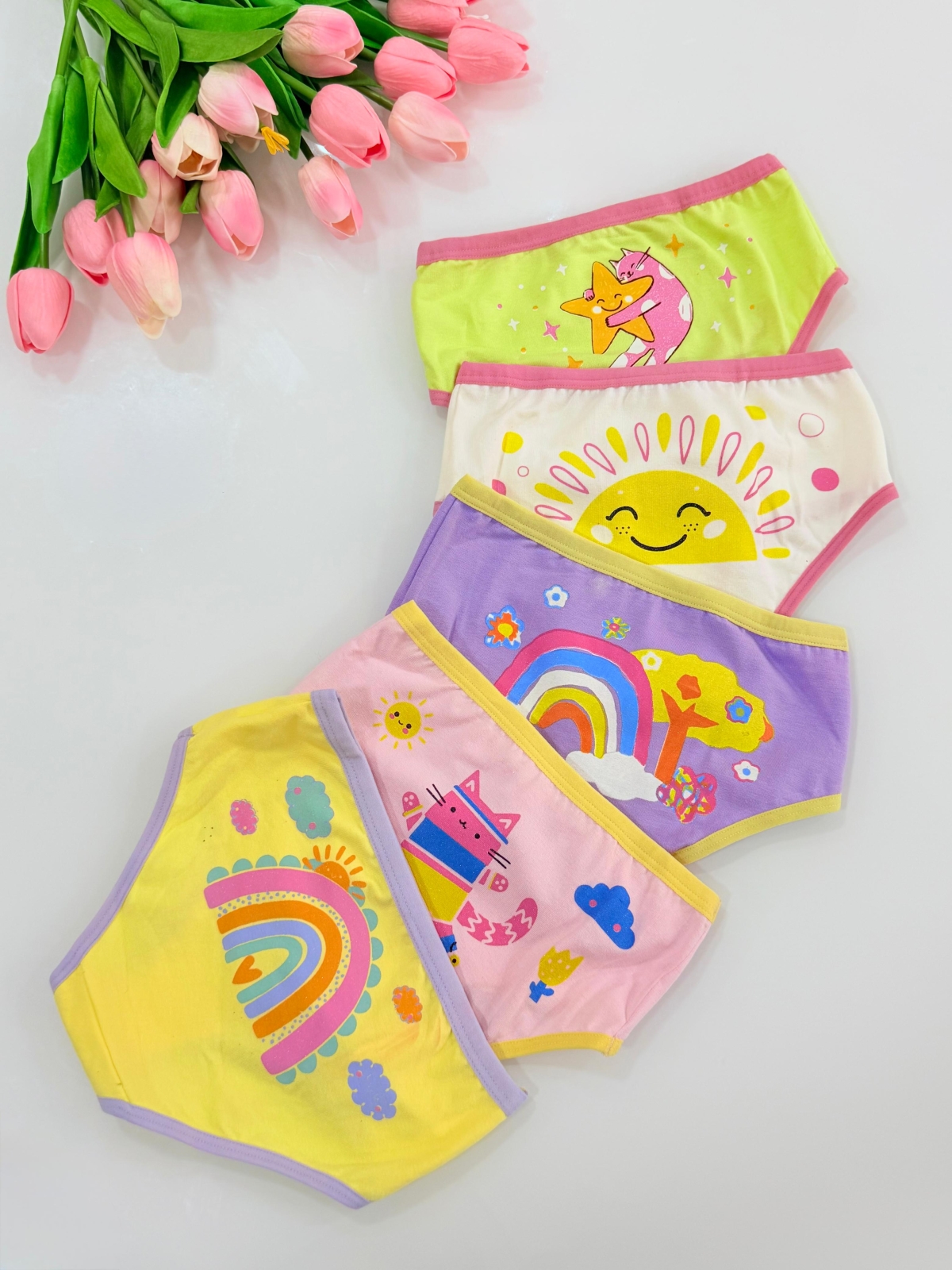 O kit contém 5 calcinhas ( uma de cada cor estampa) CALCINHA INFANTIL EM COTTON PENTEADO (96% ALGODÃO / VIÉS ELÁSTICO SUPER CONFORTÁVEL NA CINTURA E NAS PERFEITA PARA PRINCESAS QUE NÃO DISPENSAM CONFORTO NA HORA DA DIVERSÃO