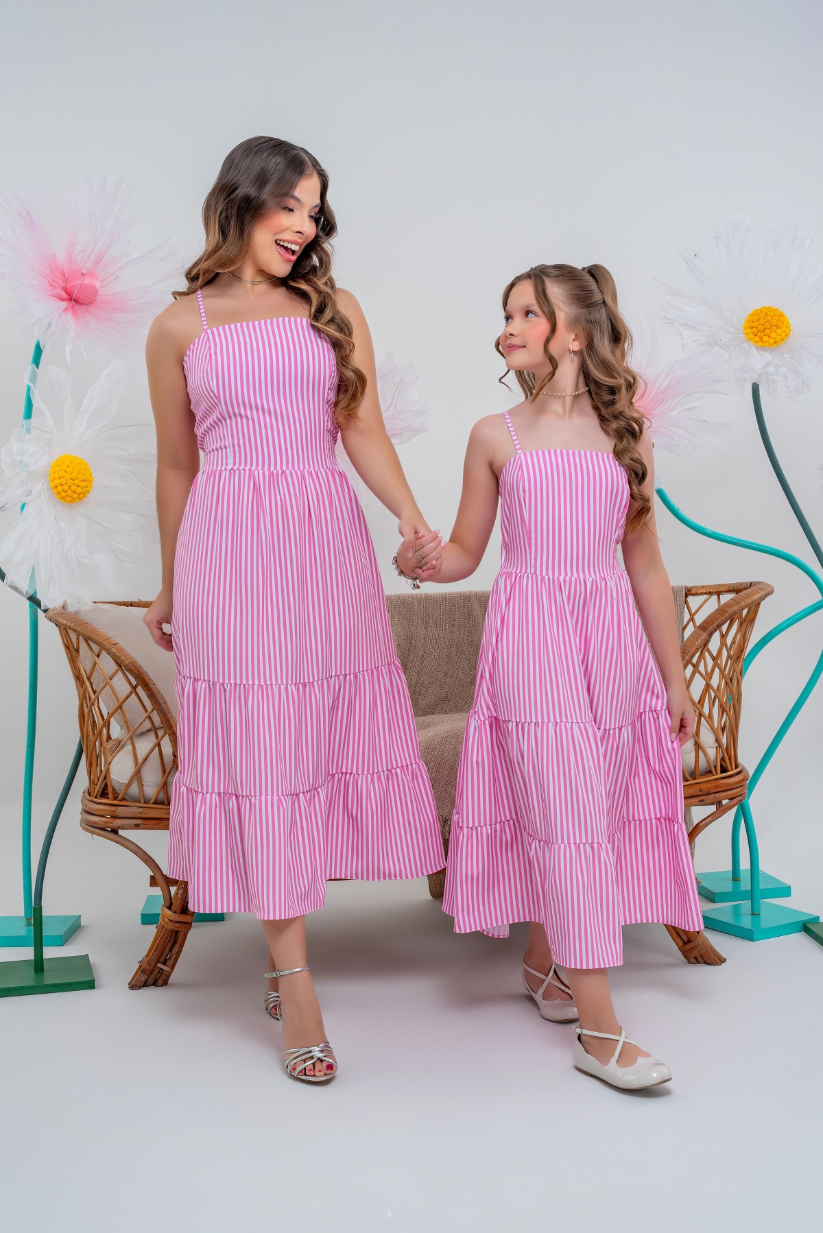 Kit Vestidos Listras Rosa - Mãe & Filha