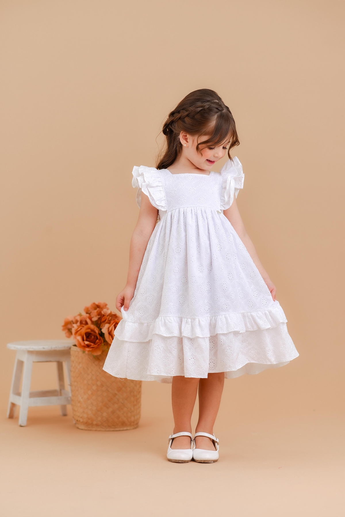 Vestido Lese Vestido Lese Algodão Detalhe de Pingente botao nas costas 6 anos - 70cm comprimento ; 60cm busto 8 anos - 76cm comprimento ; 66cm busto 10 anos - 80cm comprimento : 70cm busto |