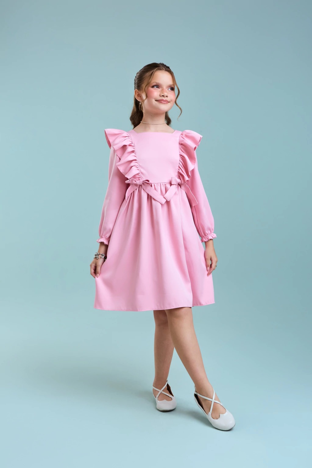 Vestido Manga Longa Rosa Bebê 5 estrelas