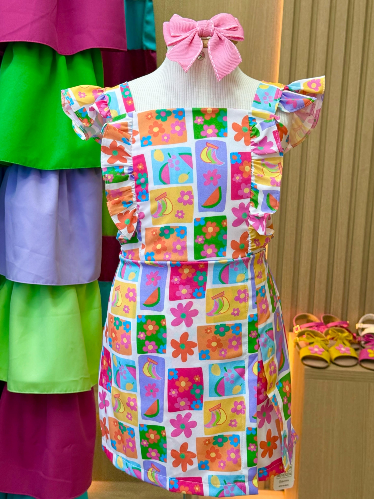 Macaquinho tecido crepe Microfibra, detalhe de ziper e amarração nas costas 4 anos - 55 cm comprimento / 30 cm busto 6 anos - 60 cm comprimento / 31 cm busto 8 anos - 63 cm comprimento / 35 cm busto 10 anos - 65 cm comprimento / 36 cm busto 12 anos - 72 cm comprimento / 39 cm busto |