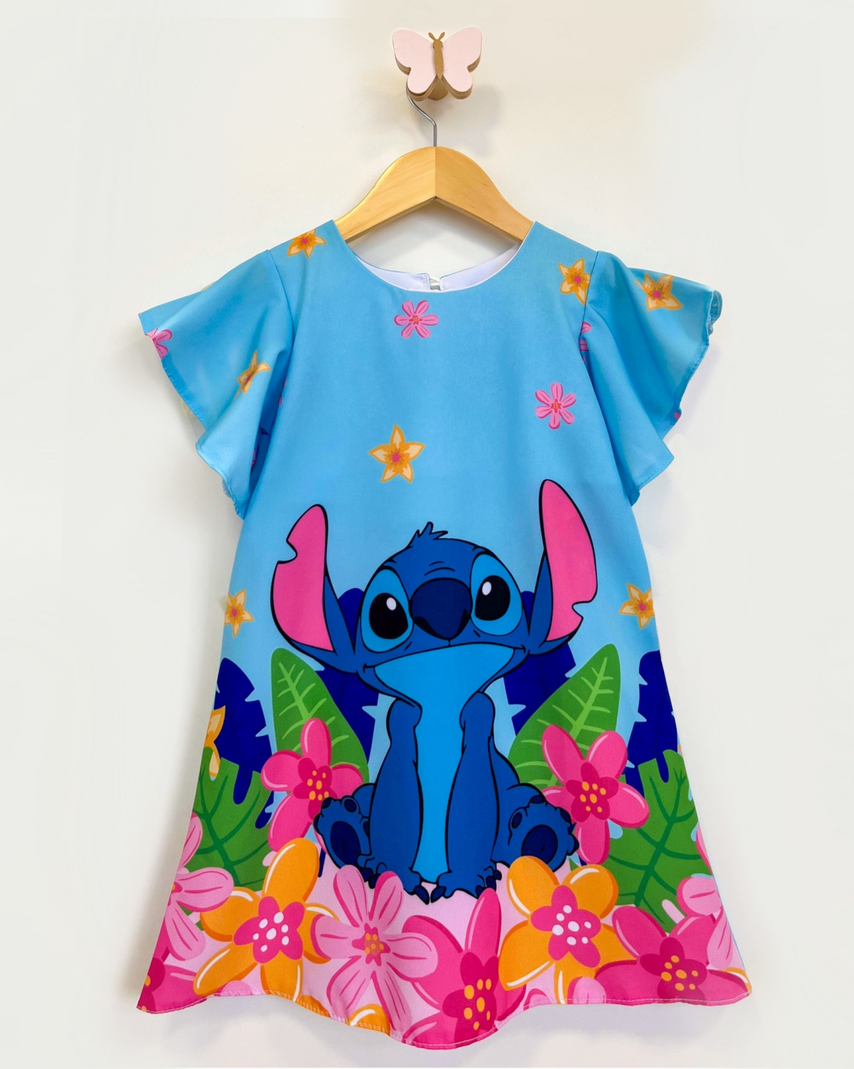 Uma Fofura!! Tecido Soft Crepe em estampa Stitch super em alta, esse modelo detalhe de botao nas costas. Sua filha vai amar |